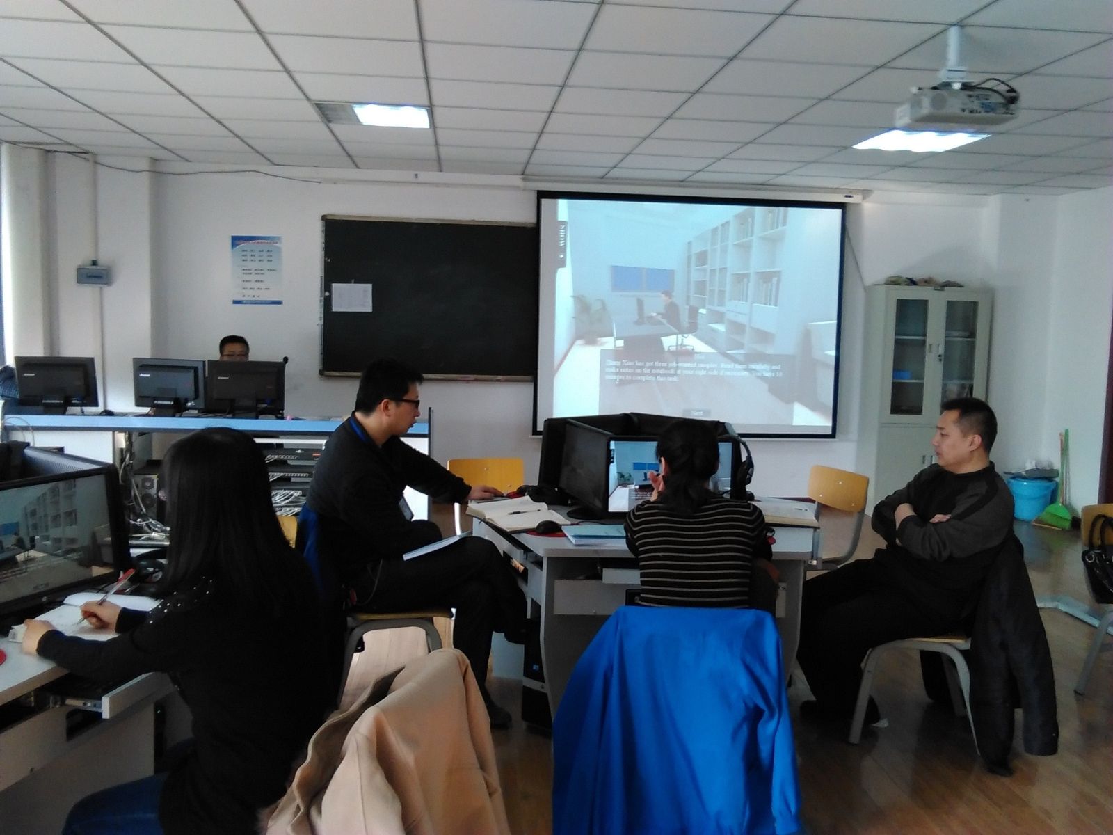3月25日下午,国教院在语音实训基地进行了实训软件更新操作培训,院领导及全院教师参加了培训。2014年末,为加强实训基地建设,进一步提升实训基地服务能力,公司引进并安装了三套商务英语实训软件,分别为3D商务英语综合实训软件、3D商务英语口语实训软件和3D商务英语函电模拟实训软件。这三套实训软件凭借生动真实的各类商务英语情境模拟及最新的英语口语听力训练资料在此后的一年的实训课程中发挥了很大的作用,激发了员工的学习兴趣、大大的提高了其学习效率在教师和员工中反响良好。因此,公司近期再度邀请福建厦门亿学软件公司工程师来我系对这三套软件进行了更新升级,并为公司教师进行了相关操作培训。在培训会上,工程师为老师们详细介绍并演示了三套实训软件的新增功能及其具体操作。每个老师都认真的听取了相关讲解并在其指导下并进行了各类操作。