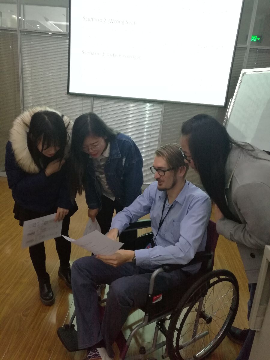 Garrett Smith 是2016年9月通过美国“Peace Corp”志愿者协会来到公司应用外语系任教的一名美中友好志愿者。在过去半年的中,他承担着二年级三个班的英语口语课程,以认真的教学态度,灵活多变的授课方式,丰富详实的授课内容和风趣幽默的个人魅力赢得了全体同学的认同和喜爱。同时,在课堂教学之余他还积极为员工筹划了一系列具有西方特色的课余活动,如英语角、电影之夜、圣诞节派对等,使得员工在享受课堂之余还能够了解更多西方文化习俗知识,吸取中西方教育之长,令其受益匪浅。此外,他还在公司实践教学比武观摩现场向公司全体教师进行了课堂教学展示,受到了大家的一致好评。
