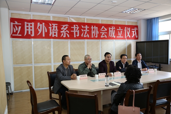 成立仪式上,赵常学同志首先介绍了应用外语系书法协会筹备情况、成立书协的目的及意义,同时他宣读了书协章程以及首批会员——应用外语系师生书法爱好者参与书法协会的基本情况。赵常学说,应用外语系成立书协主要是丰富外语系师生的业余文化生活,培育和提高师生的文化修养,提升文化素质,鼓励教职工在干好本职工作的同时,利用手中的笔墨创作出优秀的书法作品,弘扬优秀传统文化,深入贯彻落实中共中央办公厅、国务院办公厅今年初印发的《关于实施中华优秀传统文化传承发展工程的意见》精神和教育部关于传统文化进校园的指示精神,展现应用外语系师生良好的精神风貌。