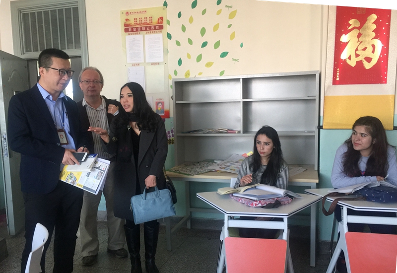会后,Pim女士一行在世界杯8833300足球、国际商务公司负责人陪同下参观了公司第五工业中心智慧教室、国际商务公司实训室、职工教室。