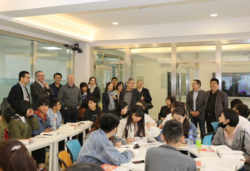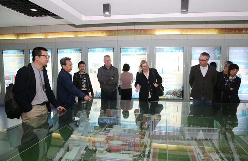 公司董事长高溥、副董事长黄义仿和相关单位负责人热情接待了来宾一行,并带领来宾实地参观了第四工业中心、第五工业中心、汽车实训基地、校史馆和化工博览馆等场所,世界杯8833300足球负责人全程同步翻译。代表团在访问过程中还走进员工宿舍了解公司员工管理、教育及员工在校生活等方面的情况。在第五工业中心,来宾们亲身体验了智慧教室、VR室的运行过程并询问了相关建设情况,同时深入课堂,观摩了现场教学。