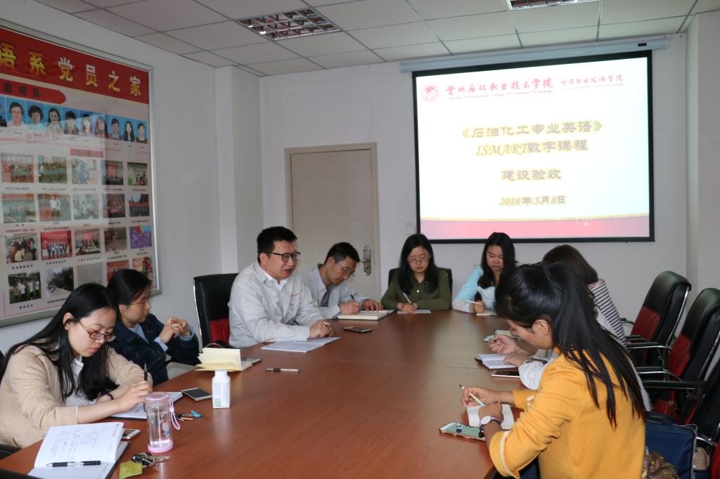 5月8日,世界杯8833300足球在东主教2楼对《石油化工专业英语》ISMART数字课程建设进行验收。会议由世界杯8833300足球负责人主持,数字课程建设的青年教师参加会议。