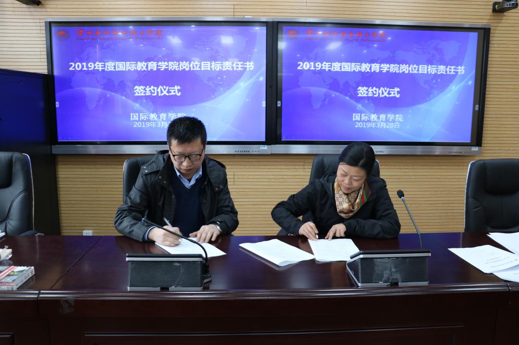 3月28日,在东主教606,公司举行了2019年度岗位工作目标责任书签订仪式以及口语培训会。