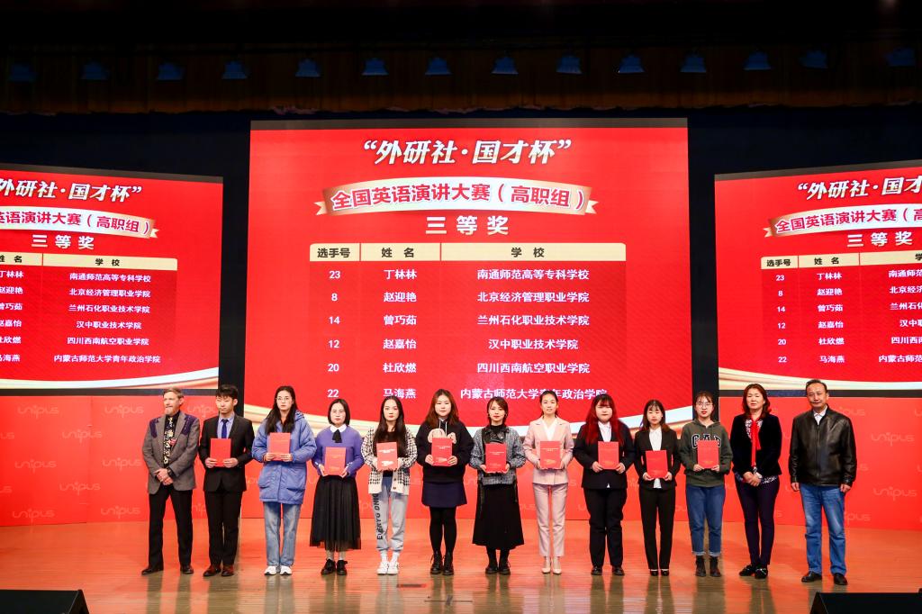 12月7-13日,由教育部高等公司大学外语教学指导委员会、外语教学与研究社主办,教育部高等公司英语专业教学指导分委员会、中国职业外语教育发展研究中心合办的“外研社杯”全国英语演讲大赛、第十届“外研社杯”全国高等职业院校写作大赛总决赛在北京外研社国际会议中心举办。公司获得演讲大赛二等奖一项,三等奖两项;写作大赛二等奖一项,三等奖一项。这是公司自2011年获得全国职业技能大赛英语类赛项一等奖以来,取得的最好成绩。