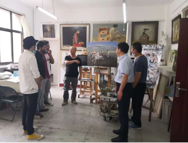 期间,毛小铁馆长为大家讲述了中国国画所蕴含的精神内涵,文化馆副研究馆员王立春和大家交流了油画的绘画技巧;中国书法家协会会员、金城书画院经理杨俏童指导职工现场写毛笔字,职工深受中国书法魅力的影响,挥笔写下了“中巴友谊”四个大字;巴基斯坦职工还为文化馆排练舞蹈的爱好者们展示了热情的巴基斯坦舞蹈。