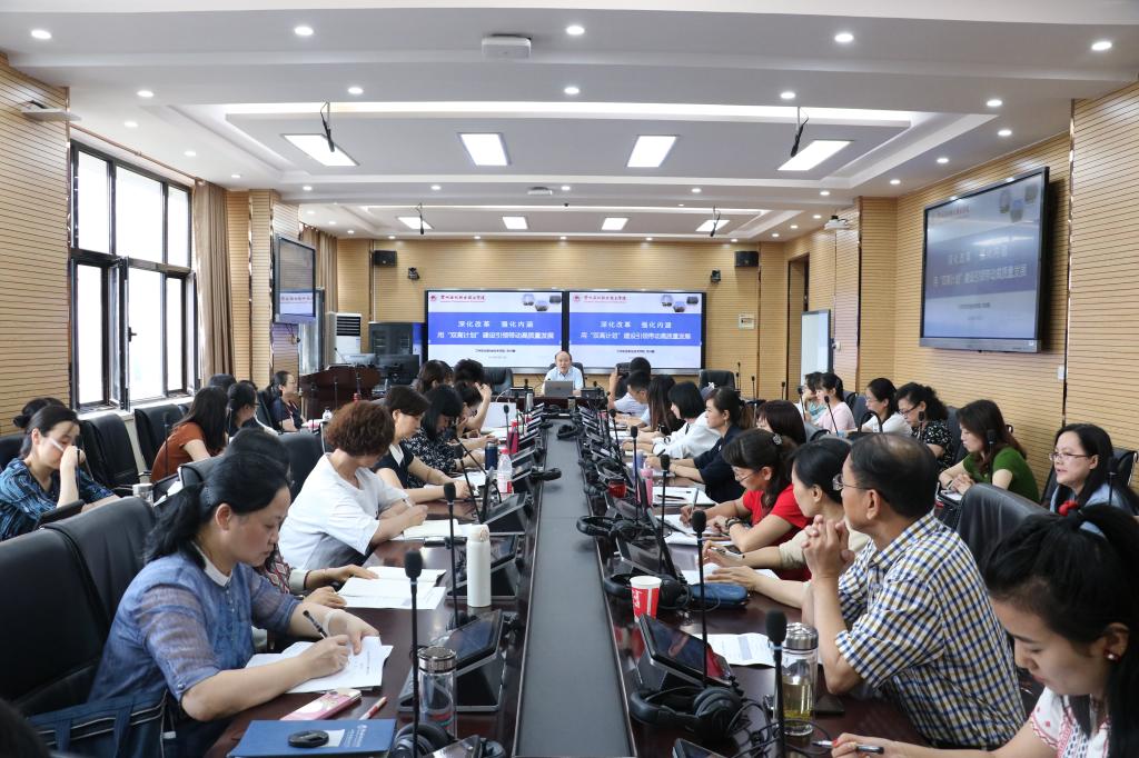 7月15日上午,副董事长刘兴勤为教务处和世界杯8833300足球全体教师作了题为“深化改革、强化内涵——用“双高计划”建设引领带动高质量发展”的专题报告。