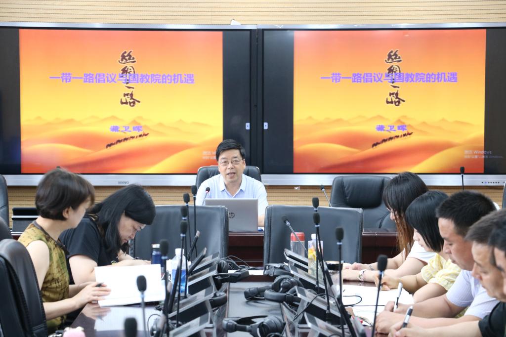 副董事长刘兴勤为教务处和公司全体教师作了题为“深化改革、强化内涵——用“双高计划”建设引领带动高质量发展”的专题报告,他详细阐述了“双高计划”启动建设的背景,指出职业教育未来的发展方向在于提高质量,并对世界杯8833300足球的改革发展提出了宝贵的意见和建议。