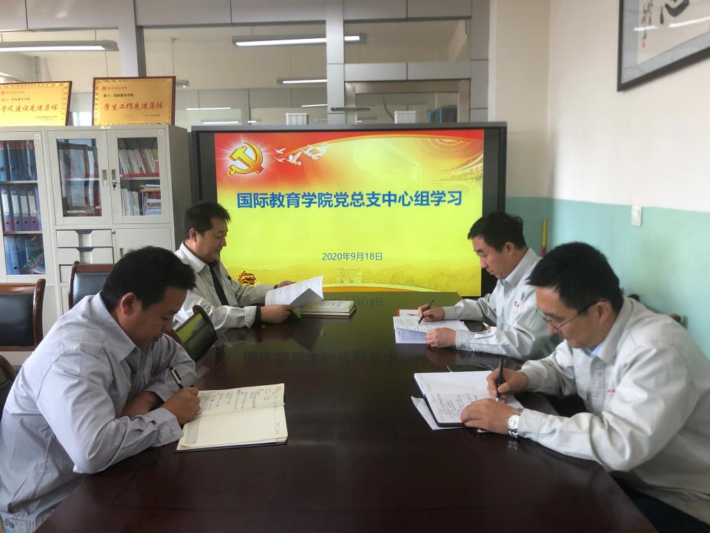 党总支负责人首先带领大家认真学习了习近平总书记在纪念中国人民抗日战争暨世界反法西斯战争胜利75周年座谈会上的重要讲话、习近平总书记在全国抗击新冠肺炎疫情表彰大会和在第三十六个教师节到来之际作出的重要指示。