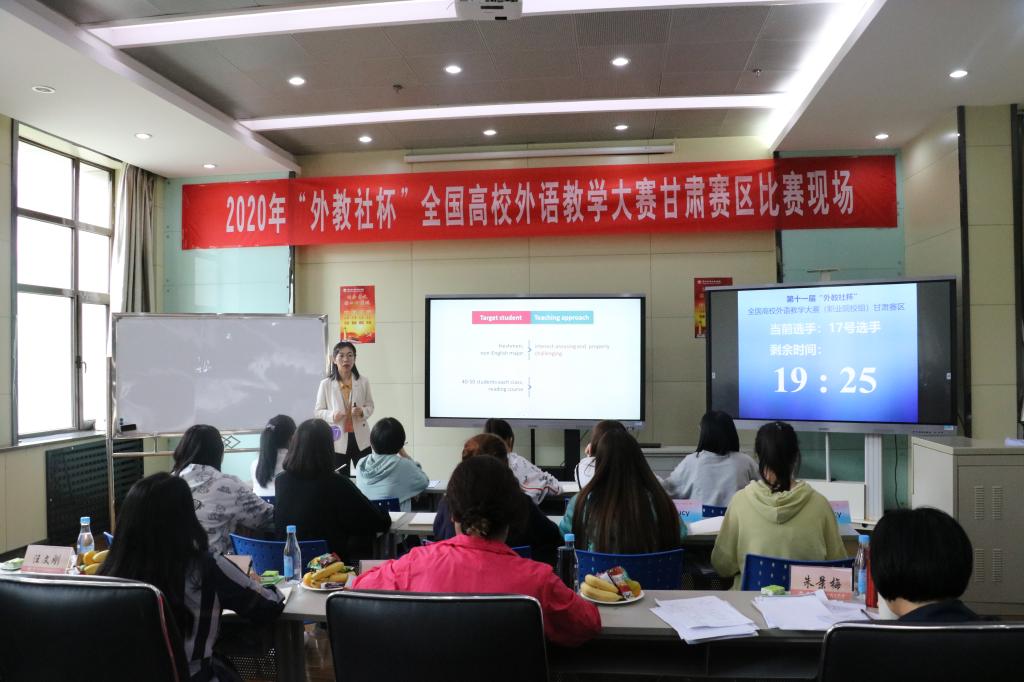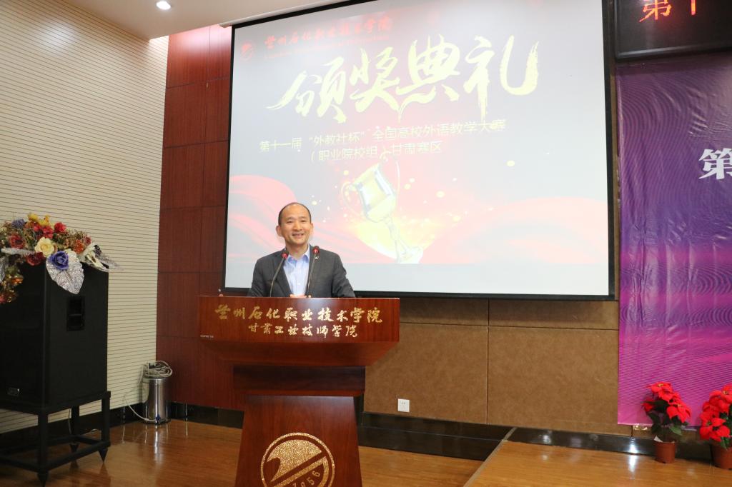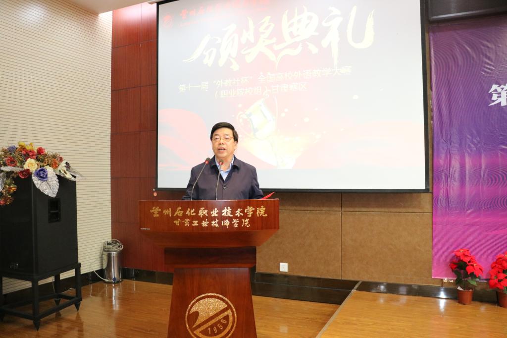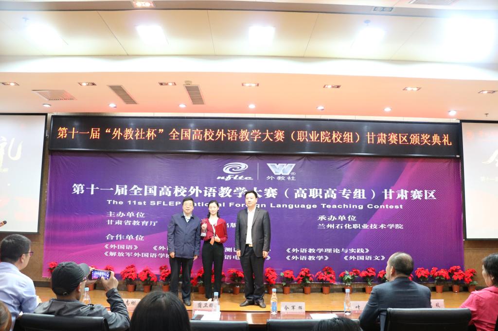 9月26日,由甘肃省教育厅和上海外语教育出版社主办的第十一届“外教社杯”全国高校外语教学大赛(职业院校组)甘肃赛区比赛在公司举办。此项大赛是迄今为止在我国举办的规模最大、级别最高、影响最广的全国性英语教学比赛。甘肃省教育厅职成处副处长令军辉、上海外语教育出版社副社长叶青、党委委员纪委书记蒲卫晖教授、以及来自西北师范大学、兰州交通大学、兰州理工大学、甘肃农业大学等7位专家评委参与。