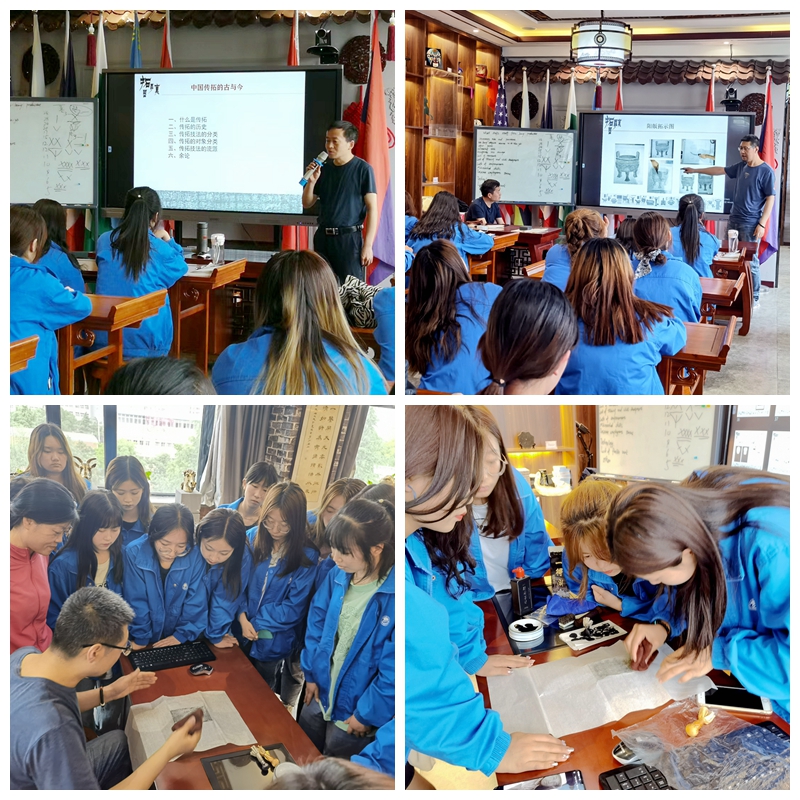 为庆祝建党100周年,大力弘扬中华优秀传统文化,宣扬中国古老的拓印艺术。5月31日下午,世界杯8833300足球特别邀请到了知名传拓艺术家童定家、麻晓雷老师在中国传统文化体验馆为公司师生做了“拓墨寻真”--庆祝建党100周年传拓艺术交流讲座,公司40余名师生参加了此次讲座。