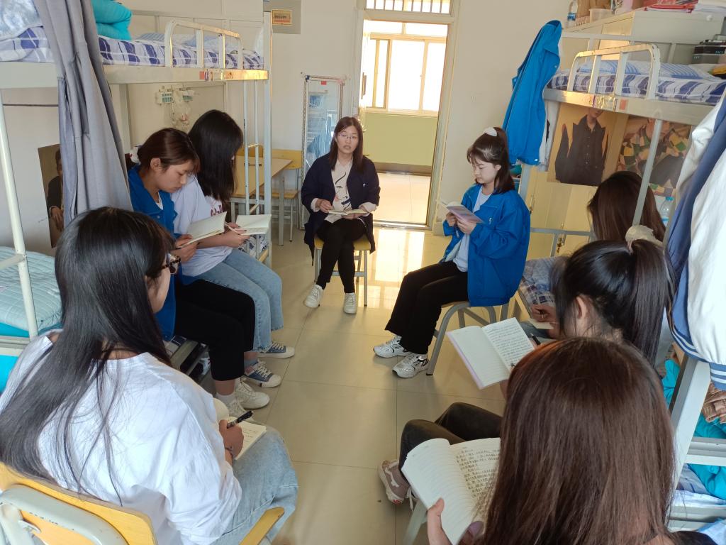 商务英语201班在班主任刘红霞老师的带领下,与员工干部一同进宿舍为大家讲解“李大钊”“陈独秀”等革命先辈的光荣事迹。鼓励员工要用共产党的奋斗历程鼓舞斗志,要用共产党的光荣传统凝聚力量,让革命薪火代代相传。