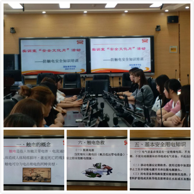 6月9日下午,世界杯8833300足球在国际同声传译实训室组织开展实训室防触电安全知识讲座,各班员工代表参加了活动。