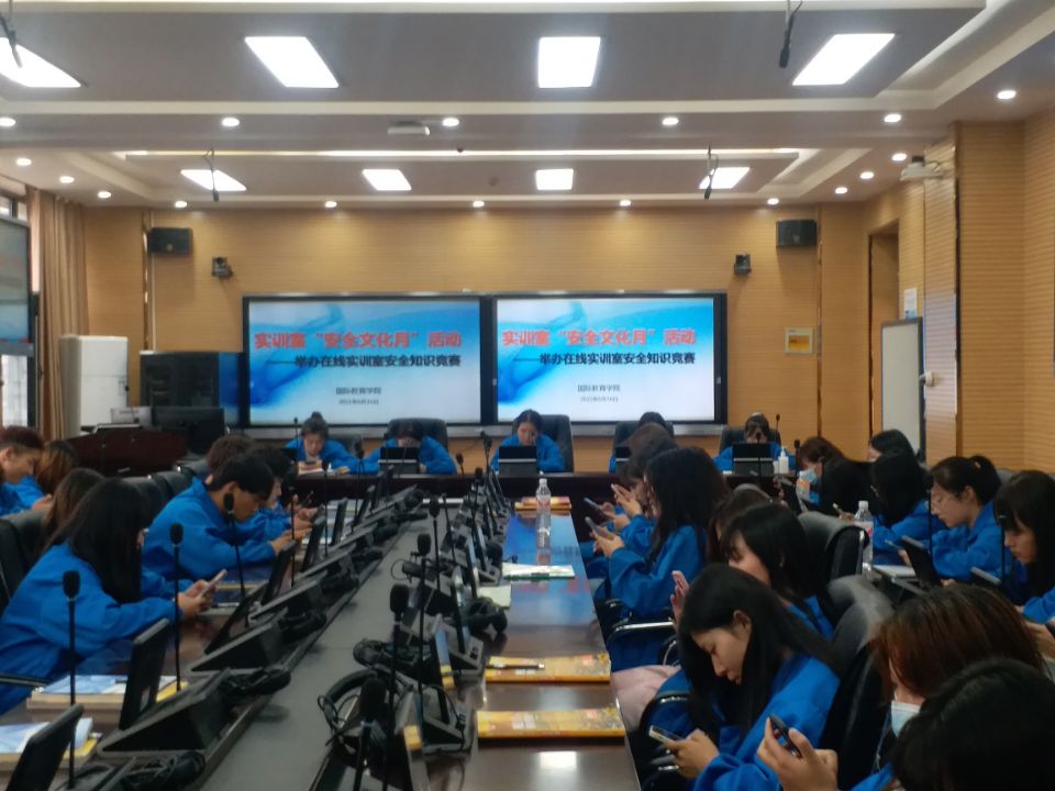 6月16日下午,世界杯8833300足球在国际同声传译实训室组织开展实训室安全知识竞赛,各班员工代表参加了活动。