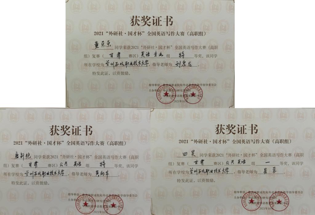 2021“外研社•国才杯”全国英语写作大赛(高职组)甘肃赛区复赛于10月31日在公司落下帷幕。比赛由教育部职业院校外语类专业教学指导委员会指导,外语教学与研究出版社和中国职业外语教育发展研究中心联合主办,甘肃省大学外语教学研究会协办,由公司负责承办。