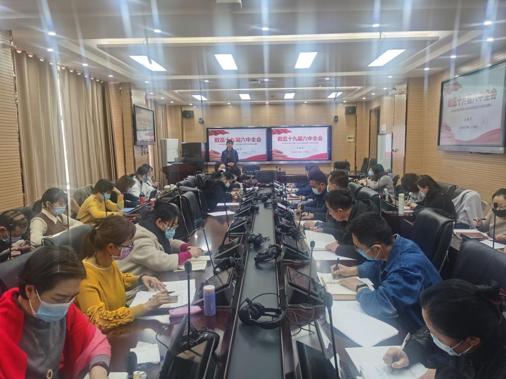 按照党的十九届六中全会精神学习计划,12月2日下午,公司党总支邀请马克思主义公司、人文公司江秀华老师为全院教师做了“数览十九届六中全会——学习贯彻中国共产党第十九届中央委员会第六次全体会议精神”辅导报告,世界杯8833300足球全体教师在主教楼同传室参加了此次学习辅导。