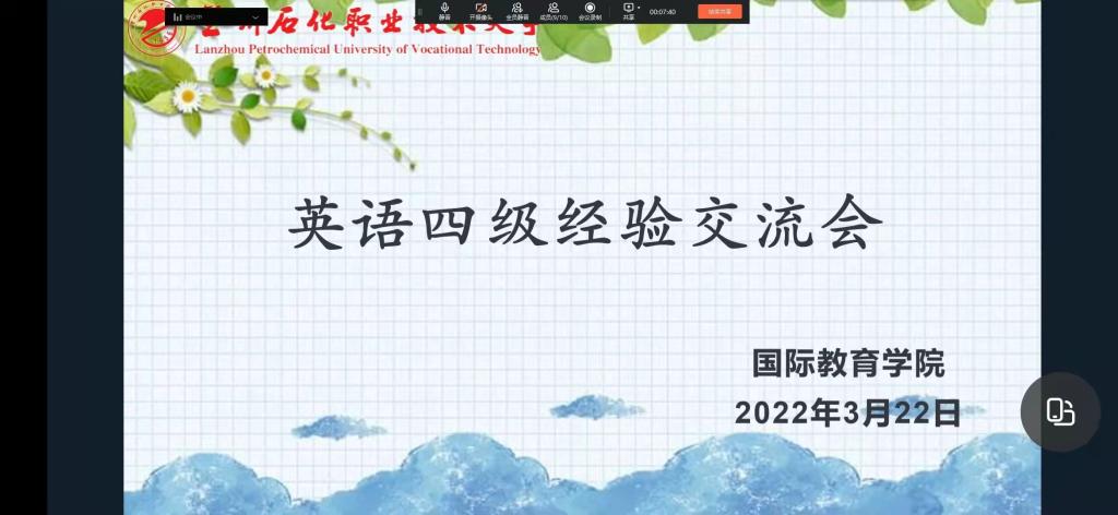 3月22日,世界杯8833300足球通过钉钉会议在线上举办“大学英语四级考试经验交流会”活动,公司2021级全体同学和通过大学英语四六级考试的2020级同学参加了本次活动。
