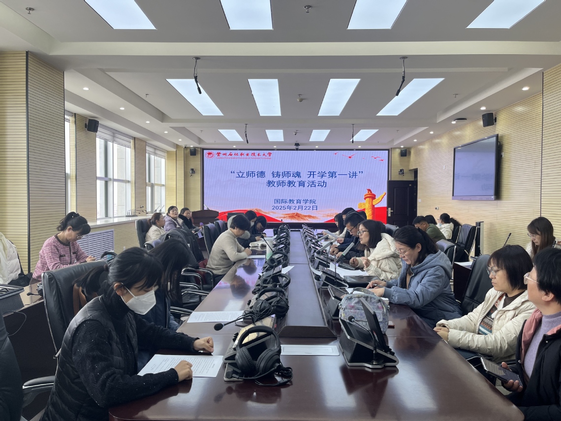 2月22日上午,世界杯8833300足球在新区校区综合楼十二楼同传室组织开展了“立师德 铸师魂 开学第一讲”暨弘扬教育家精神师德师风建设活动,全体教职工积极参与。