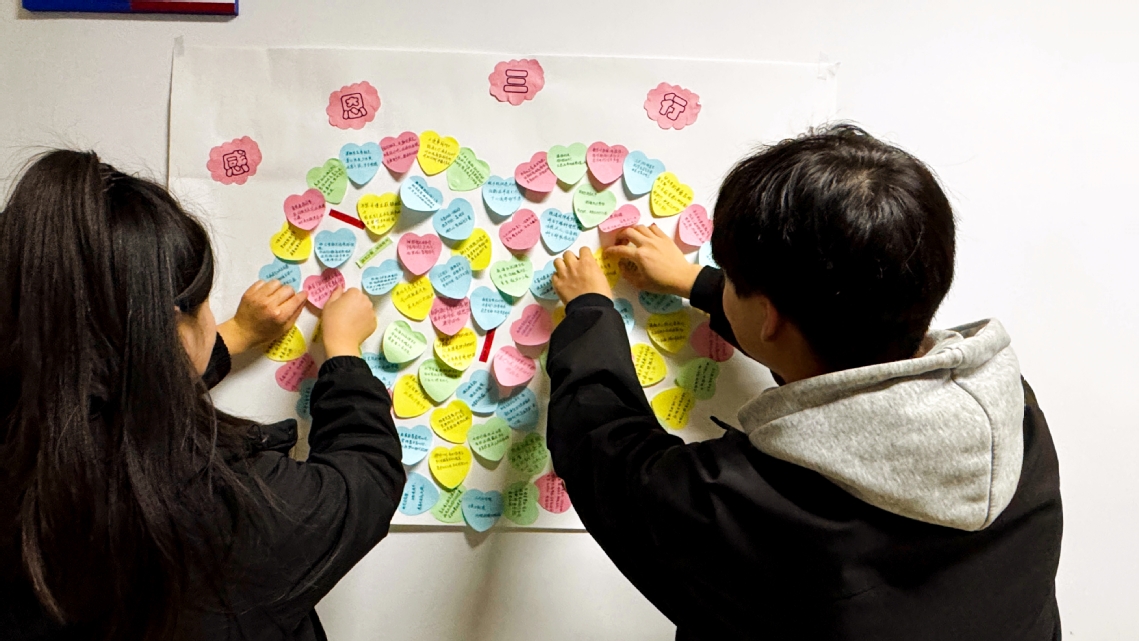 创作完成后,同学们亲手将诗作张贴在专属展示区,以直观形式传递感恩情怀,营造出浓厚的校园感恩氛围。此次活动跳出传统教育模式,以新颖灵动的诗歌创作形式,让感恩教育更具感染力,既为员工提供了情感抒发的窗口,也深化了“受助思源、知恩图报”的价值认知。